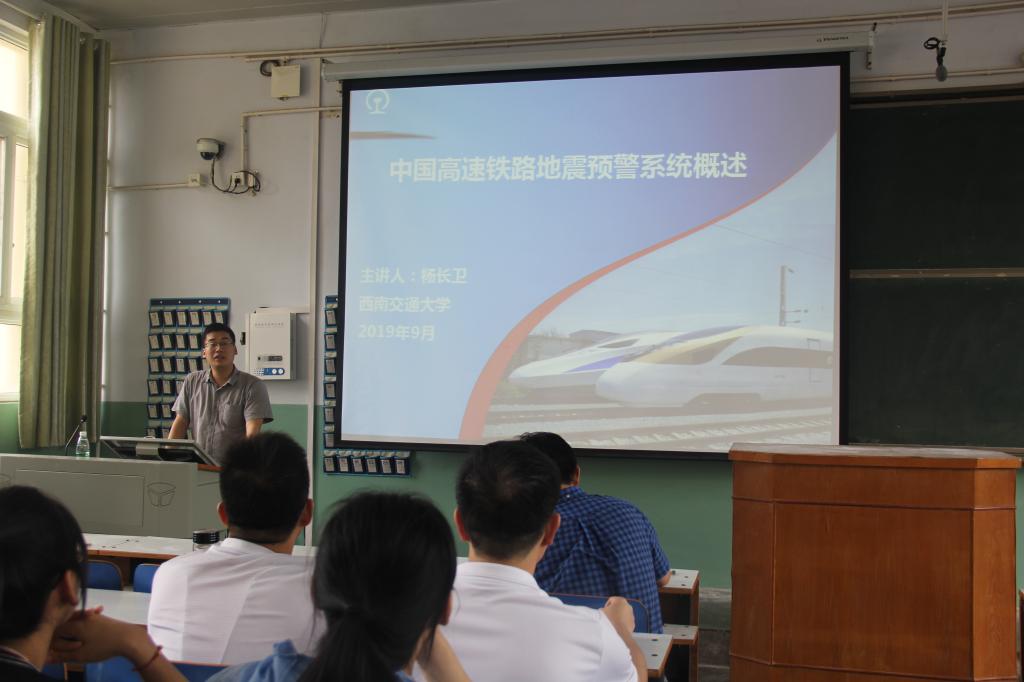 杨长卫博士介绍了利用电磁波和地震波速度差及P波和S波速度差预测地震强度和到达时间预警信息,向影响区域高速铁路提供数秒至数十秒的预警时间,使运行的高速列车能够提早采取地震应急处置措施,避免或减轻人员伤亡和财产损失。随后,杨长卫博士与师生就相关问题进行了深入的交流和讨论,现场气氛热烈。