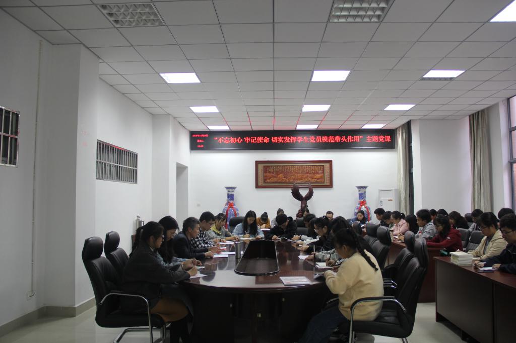 10月8日,学院党委书记黄学玉作了题为《不忘初心、牢记使命,切实发挥学生党员的模范带头作用》的专题党课。学院学生第一党支部、研究生党支部全体党员参加党课学习。黄学玉围绕“不忘初心、牢记使命”主题教育,从“充分认识重大意义,切实增强主题教育的自觉性”“准确把握目标要求,切实增强主题教育的针对性”“认真落实重点措施,切实增强主题教育的实效性”三个方面讲授了党课,进一步阐释了中国共产党人初心和使命的内涵,“不忘初心、牢记使命”主题教育的重要意义、目标要求,深刻论述了作为青年学生党员应该牢记和坚守的初心使命,以及如何发挥学生党员的模范带头作用。黄学玉强调,作为新时代青年学生党员,应该也必须牢记共产党人的初心使命,牢记入党誓词,践行承诺,时刻以党员的标准严格要求自己,努力成为“四讲四有”的合格党员,自觉发挥党员模范带头作用,为实现中华民族伟大复兴的中国梦贡献自己的力量。