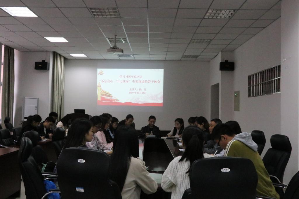 10月15日,学院副院长陈哲在综合实验楼206会议室为学生第三党支部全体党员作了题为《学习习近平关于“不忘初心、牢记使命”重要论述的若干体会》的专题党课。陈哲结合自身所学、所思、所悟,围绕主题教育的重大意义和目标要求,牢记高等教育的初心和使命,努力培养德智体美劳全面发展的社会主义建设者和接班人的问题与大家交流学习心得体会。陈哲指出,全体党员都应当认真检视自己在践行初心和使命过程中存在的问题,剖析根源,认真整改,守住初心,担起使命,为学校和学院的发展建设贡献力量。