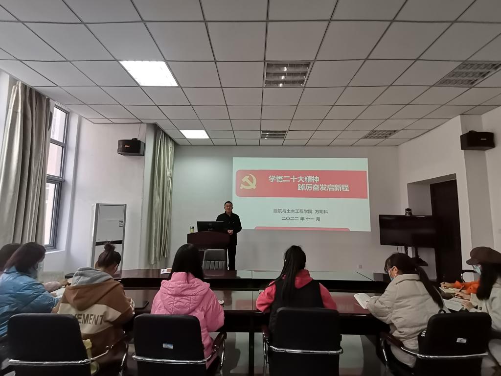开班仪式结束后,方明科为培训班学员作了题为“学悟二十大精神,踔厉奋发启新程”的首场辅导报告。方明科首先从党的二十大的重大意义、主题和主要成果、过去5年的工作和新时代10年的三件大事和伟大变革、在16个方面取得的主要成就、全面建设社会主义现代化国家的目标任务,坚持党的全面领导和全面从严治党,应对风险挑战,教育、科技、人才工作的部署等方面对党的二十大精神进行了深入解读。接着,方明科结合学院专业特点和优秀校友事迹,激励同学们志存高远,锐意进取,努力学习,勇于创新,不断提升专业素养,锤炼吃苦精神,勇于砥砺奋斗,主动担当作为,在大学里学本领、长本领、有本领,让青春在全面建设社会主义现代化国家的火热实践中绽放绚丽之花。