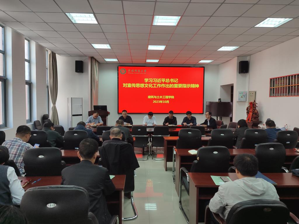 10月7日至8日,全国宣传思想文化工作会议在北京召开,会上传达了习近平总书记对宣传思想文化工作作出的重要指示,正式提出和系统阐述了习近平文化思想。建筑与土木工程学院党委迅速掀起学习宣传热潮,推动习近平文化思想入脑入心、落地生根,不断开创新时代宣传思想文化工作新局面。