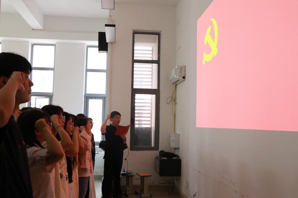 “我志愿加入中国共产党,拥护党的纲领,遵守党的章程……”全体毕业生党员在王凯的带领下,面向党旗,高举右拳,重温入党誓词。铮铮誓言,是临行前再次向党作出的庄严承诺,更是坚守入党初心,牢记使命担当,争当先锋表率的精神烙印。