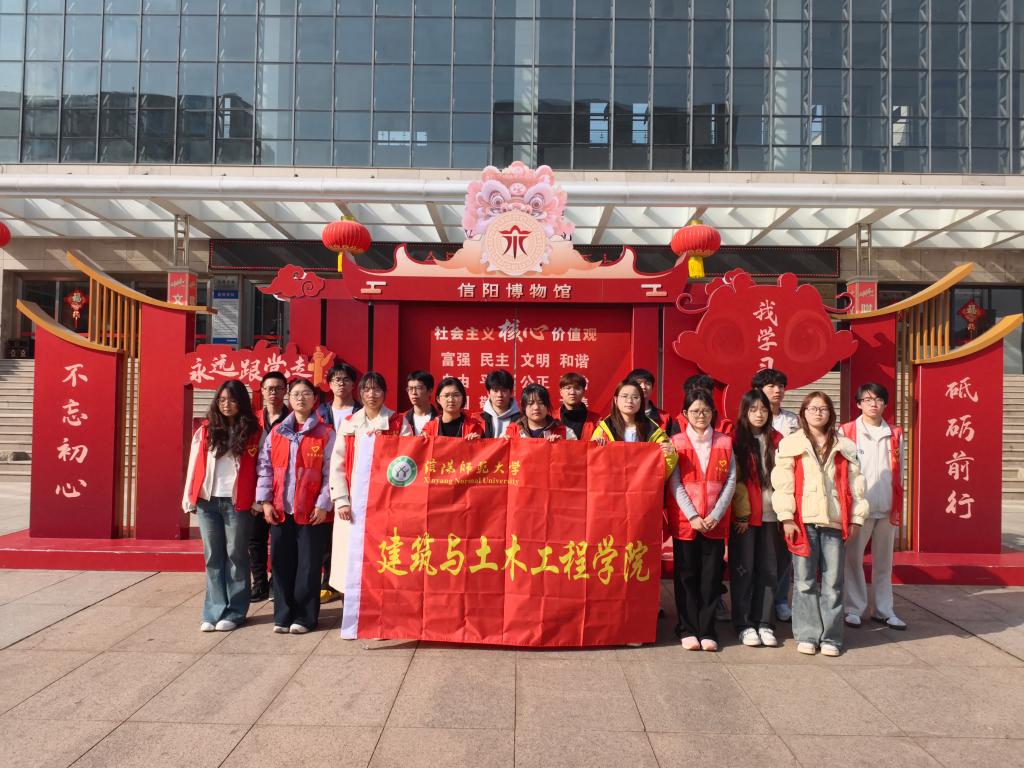 助力文化服务,彰显青年素养。在信阳市博物馆,志愿者们身着醒目的“红马甲”,在咨询台、展厅入口、重要展品等区域提供耐心细致的引导服务,不仅保障了游客的参观体验,也成为连接公众与历史文化的桥梁,充分展现了新时代大学生良好的服务意识与文化素养。