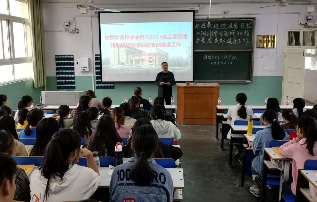 为了进一步加强学校基层团组织阵地建设,真正打通基层团组织与青年最后一公里障碍,校团委书记王建旭一行于10月8日上午深入我院2017级工程管理班开展了基层团组织建设主题座谈会,会议由学院党委副书记方明科主持。