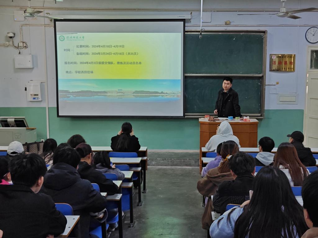 为认真做好春季运动会准备工作,充分调动学生的参赛热情,3月24日,WilliamHILL中国在教2T5召开Williamhill中文第一届春季运动会动员会,学院党委副书记冀鹏,团委老师冯舒心,学院各班级学生代表参加会议。