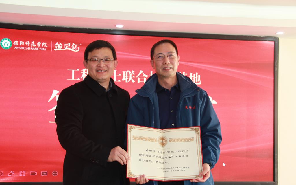 12月29日上午,建工学院工程硕士专业学位研究生联合培养基地签约暨揭牌仪式在信阳市灵石科技有限公司隆重举行。